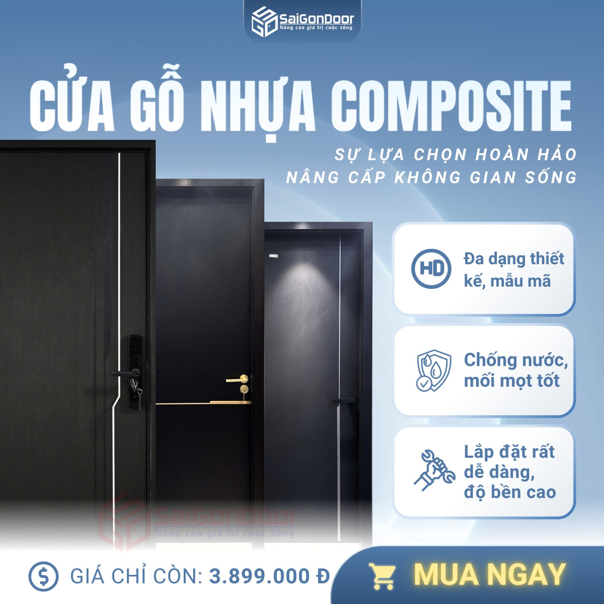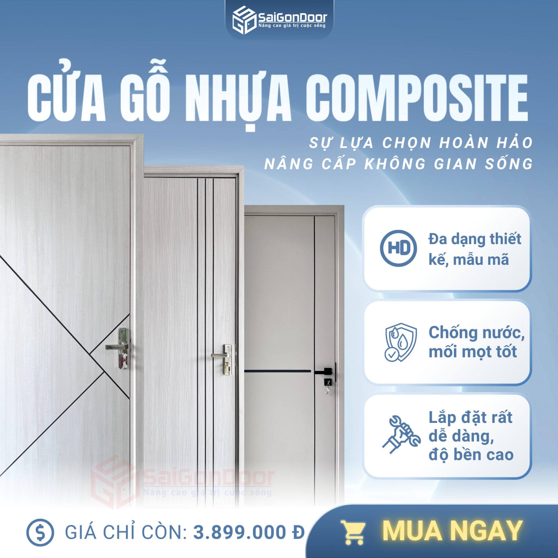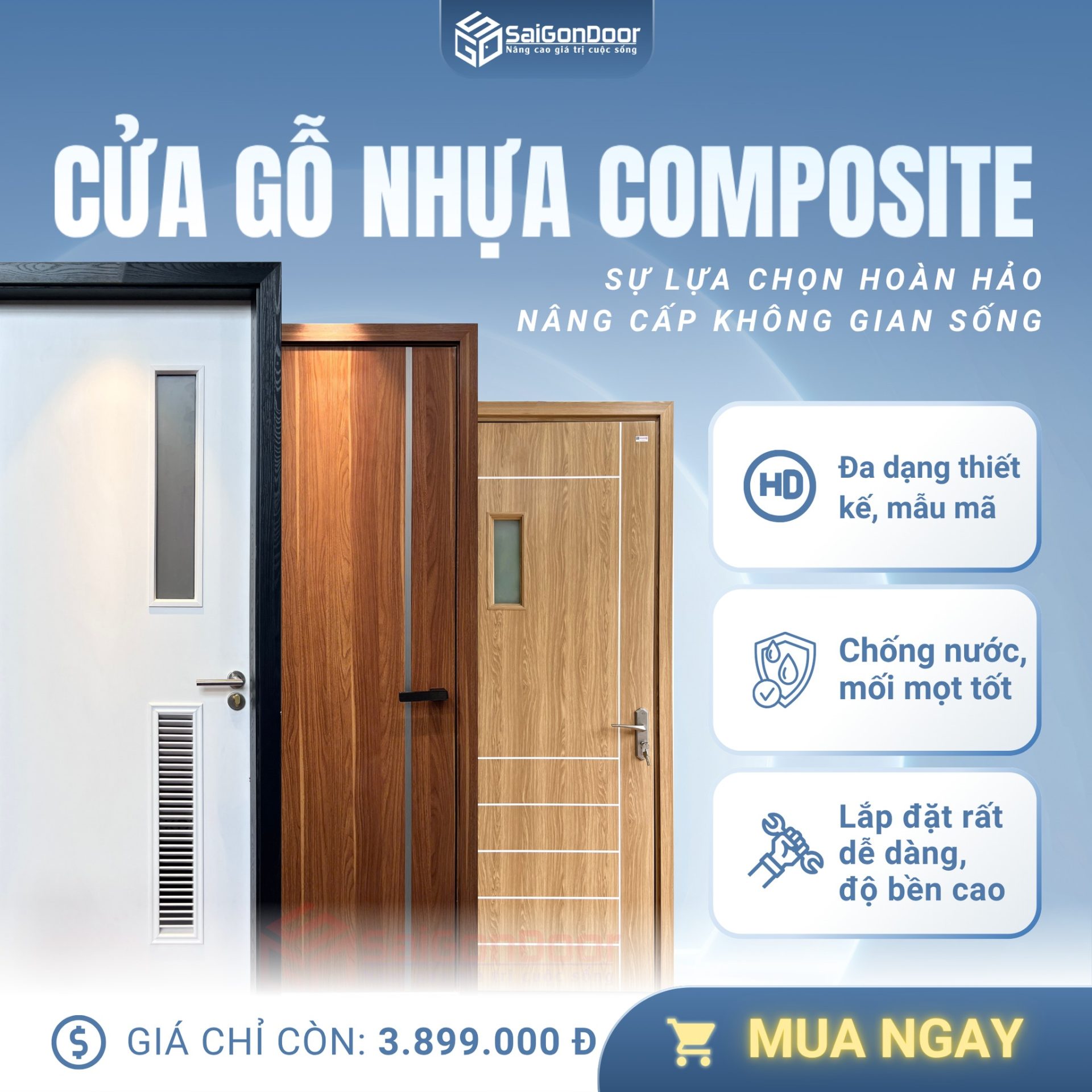 Nếu bạn đang có nhu cầu nâng cấp không gian sống với một giải pháp cửa bền đẹp – hiện đại – tiết kiệm, đừng ngần ngại lựa chọn cửa gỗ nhựa Composite tại SaiGonDoor để trải nghiệm chất lượng vượt mong đợi!